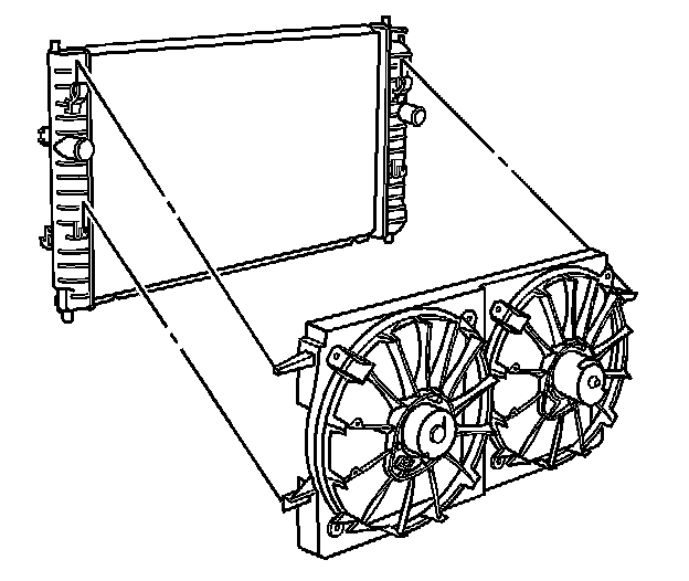 7. Install the radiator, fan, and condenser as an assembly to the vehicle.