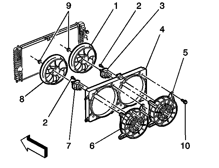 Caution: To help avoid personal injury or damage to the vehicle, a bent, cracked, or damaged fan blade housing should always be replaced.