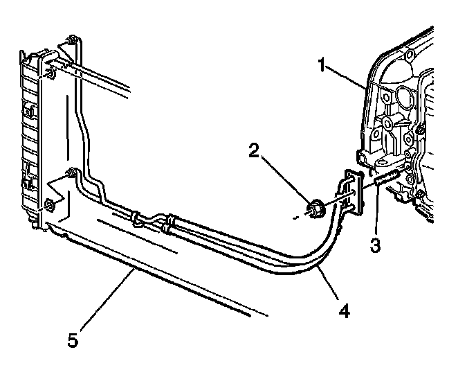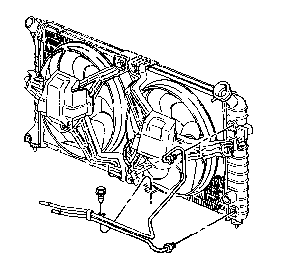 13. Install the lower transaxle cooler line to the radiator.