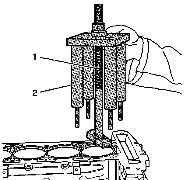 2. Install EN 45680-851 (2) to the cylinder block while installing the EN 45680-852 (1) through the cylinder bore.