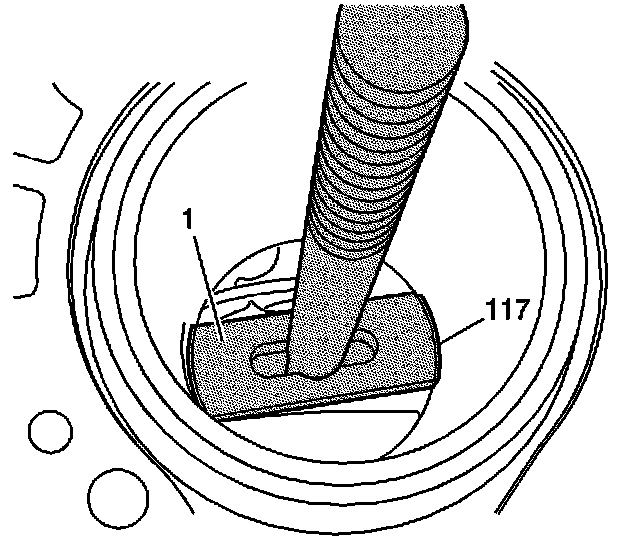 3. Align the shoe (1) of EN 45680-852 to the bottom of the cylinder bore liner (117).