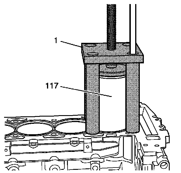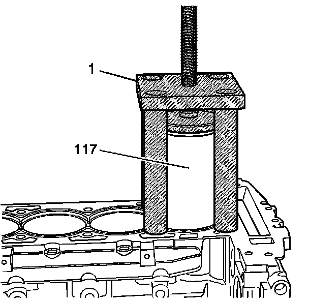 1. Place the NEW cylinder bore liner (117) onto the cylinder block.