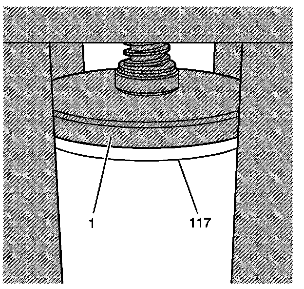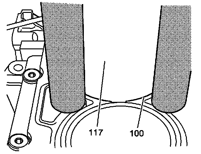 5. Align the bottom of the cylinder bore liner (117) with the cylinder bore of the block (100).