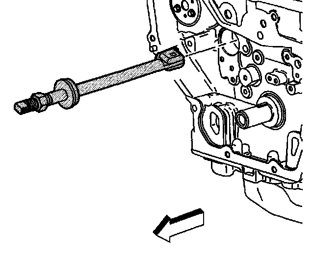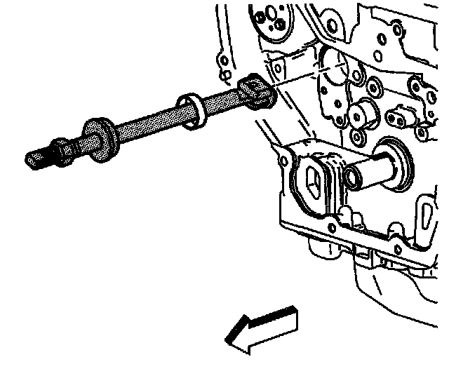7. Tighten the nut on the J 43650 until the tension releases. When the tension releases, remove the J 43650 and the balance shaft bushing.