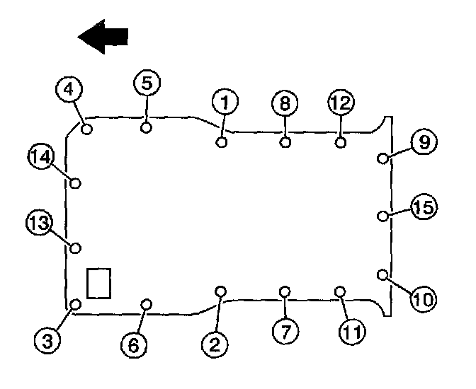 Tighten the oil pan bolts to 25 Nm (18 ft. lbs.) in sequence.