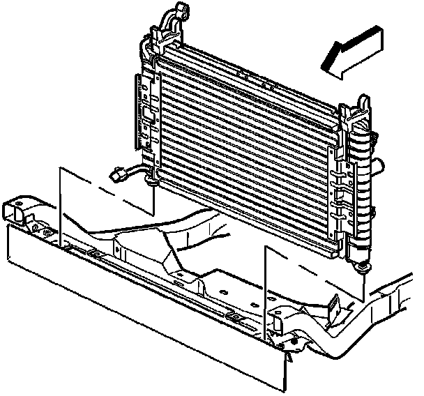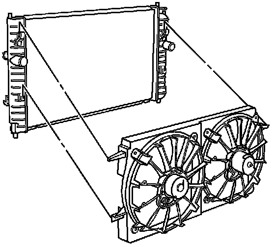 7. Install the radiator, fan, and condenser as an assembly to the vehicle.