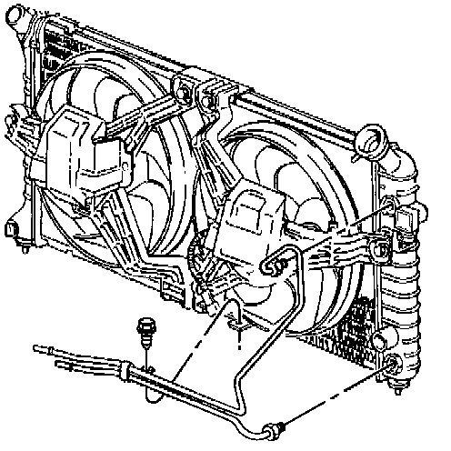 8. Reposition the transmission oil cooler lines away from the fan shroud.