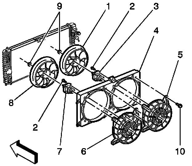 1. Remove the cooling fan. Refer to Cooling Fan Replacement - Electric.