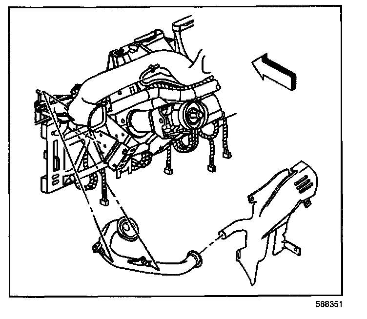 1. Install the left defogger outlet duct over the air distribution duct.