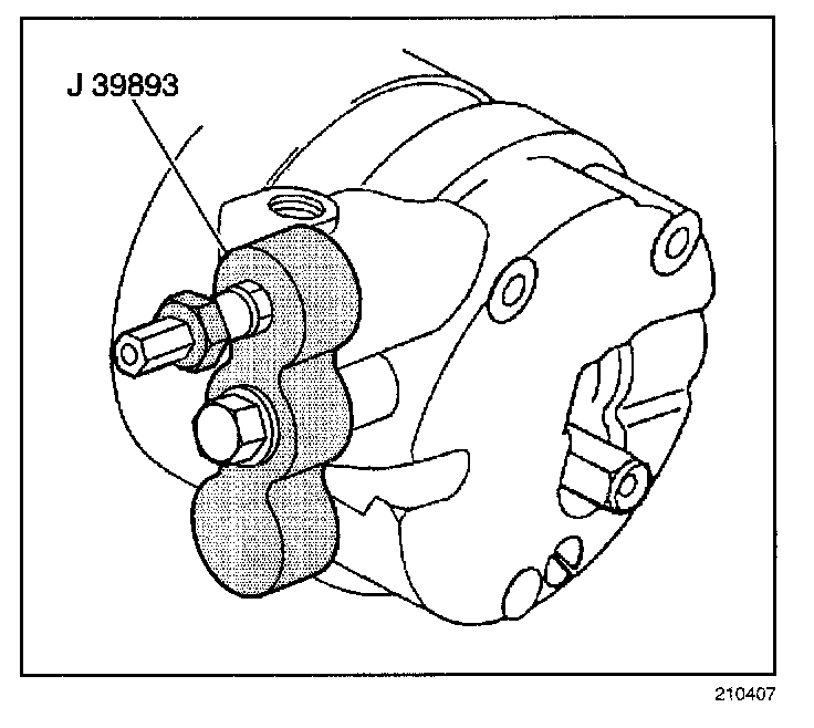1. With the sealing washers in place, install the J 39893 on the rear head of the compressor.