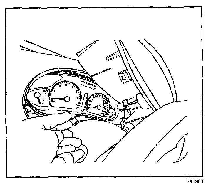 3. Release the retainers on the trip odometer and reset switch by using a small flat-bladed tool.