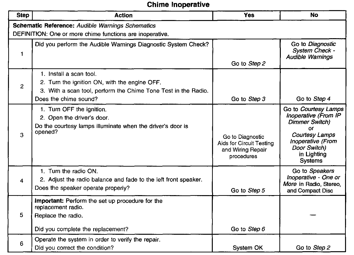 Chime Inoperative
