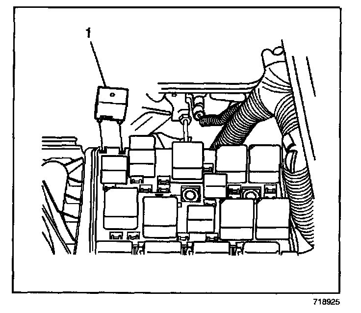 1. Position the horn relay (1) to the underhood electrical center pressing in until fully seated.