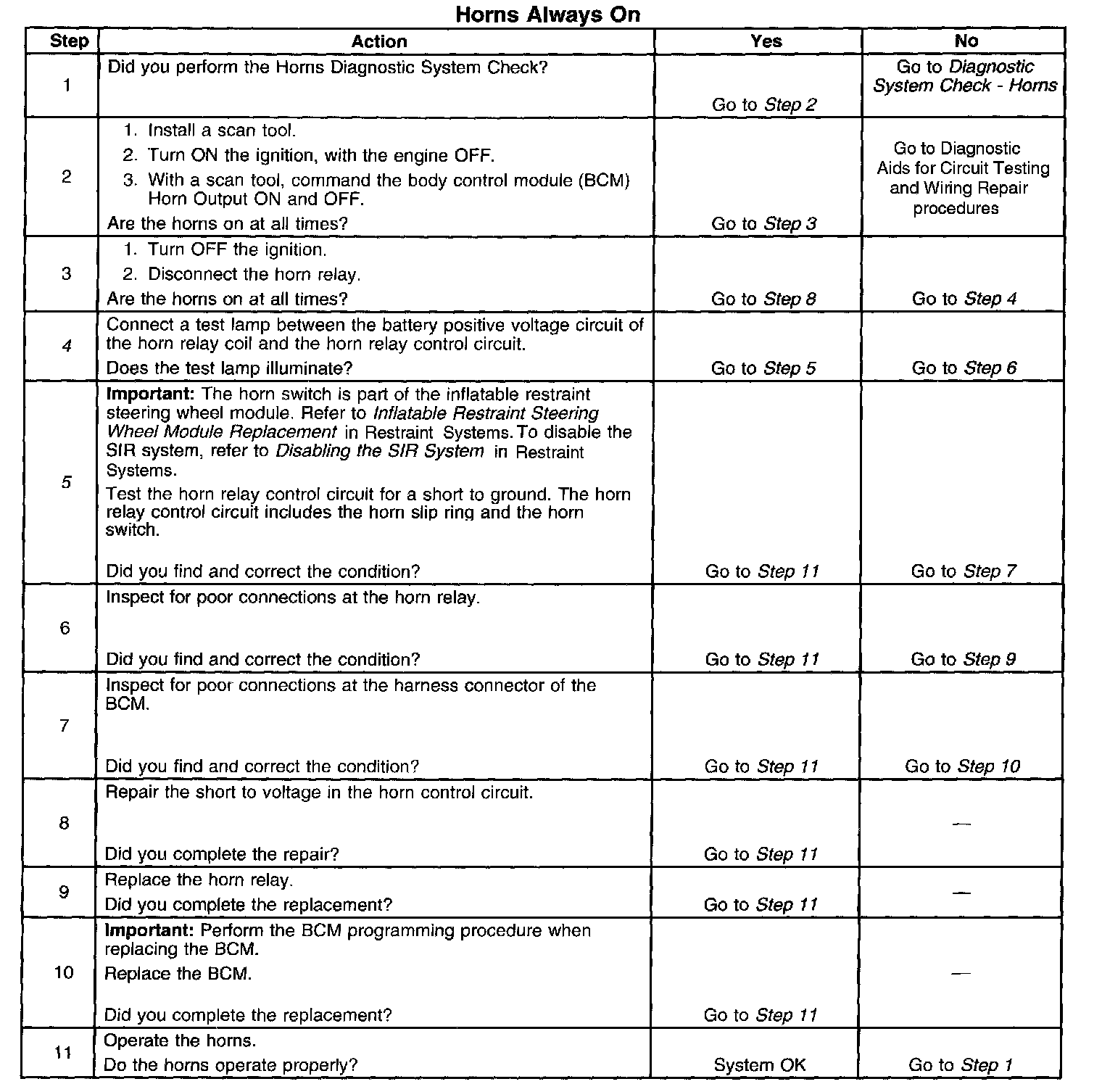 5. The horn relay control circuit includes the horn slip ring and the horn switch. The horn slip ring and the horn switch must be tested for a short to ground when testing the relay control circuit.