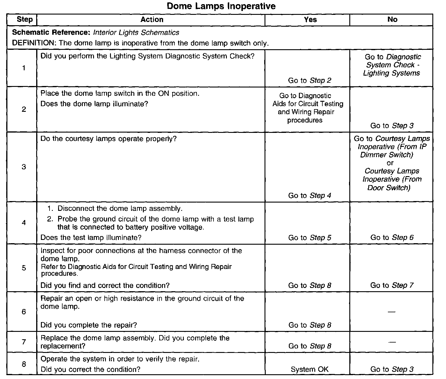 Dome Lamps Inoperative