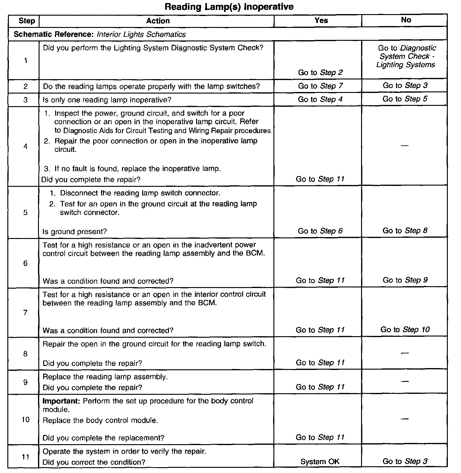 Reading Lamp Inoperative