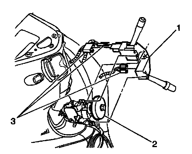 4. Disconnect the electrical connectors (3) from the multifunction switch (1).