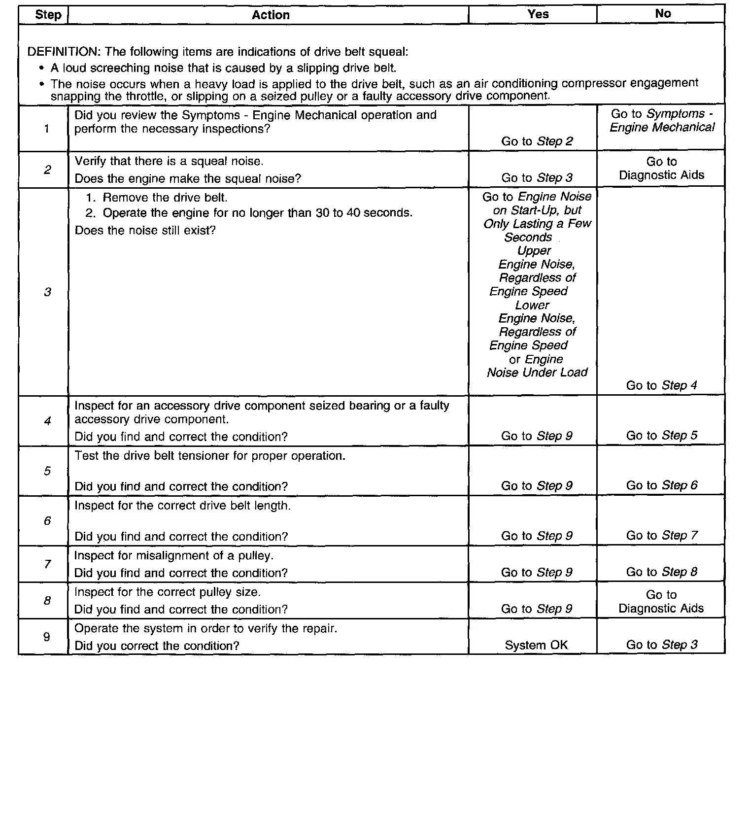 Drive Belt Squeal DiagnosisDiagnostic Aids
