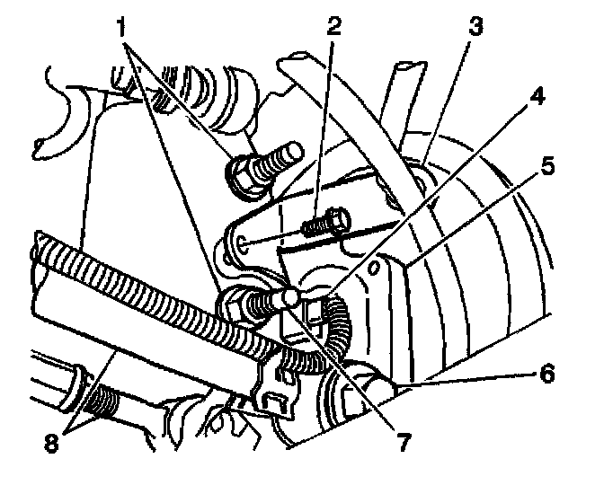 6. Remove the trailing arm (6) from the knuckle (8).
