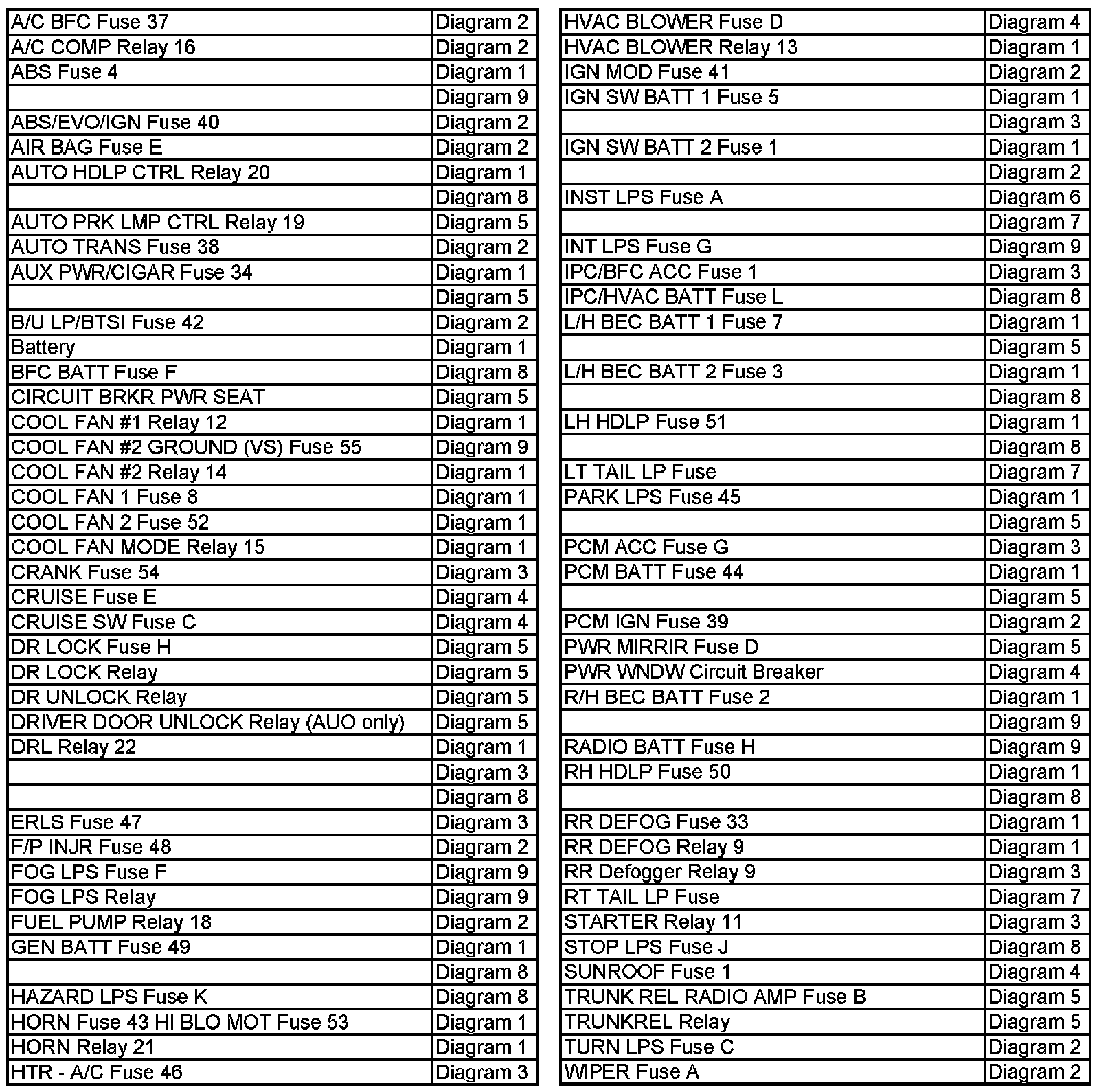 Wiring Diagram Index