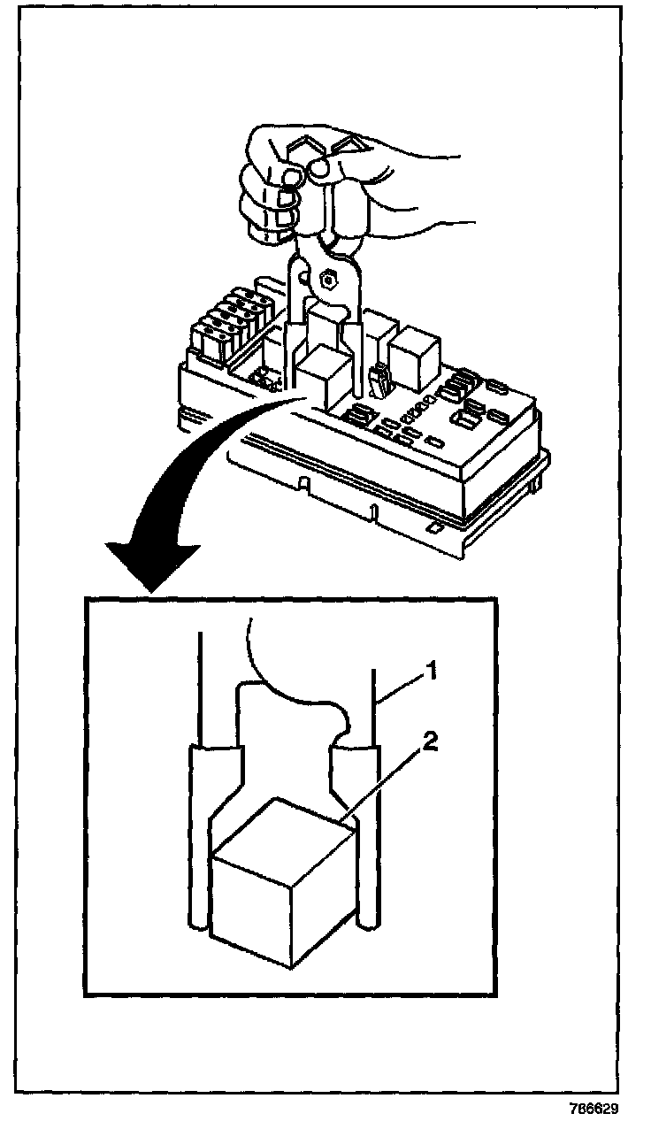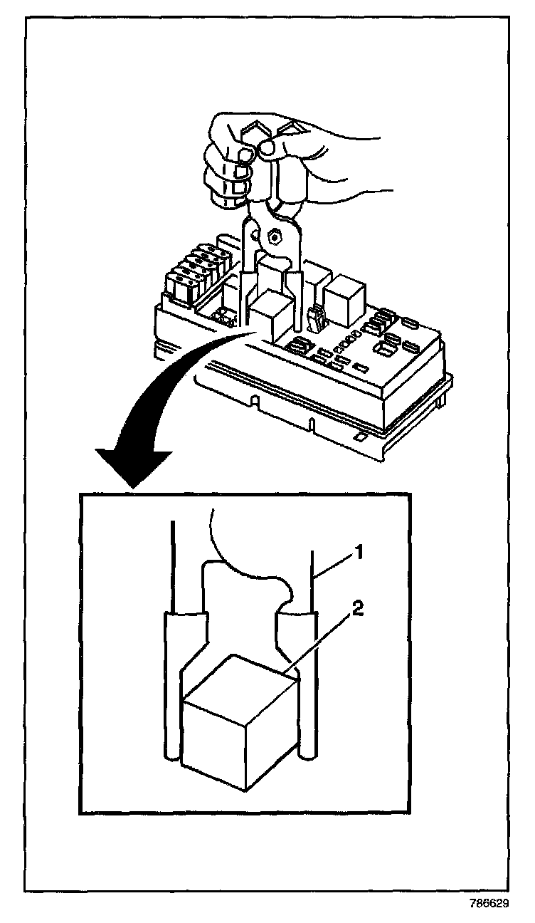 4. Remove the relay (2) from the electrical center.