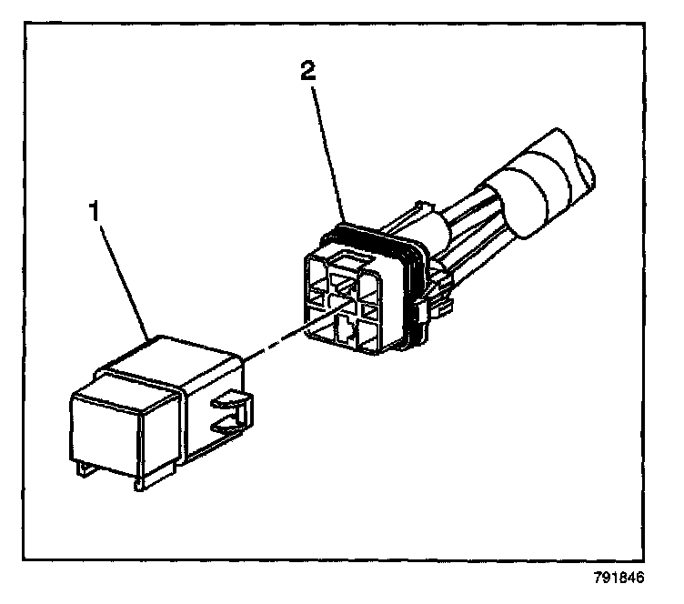 4. Separate the relay (1) from the wire harness connector (2).
