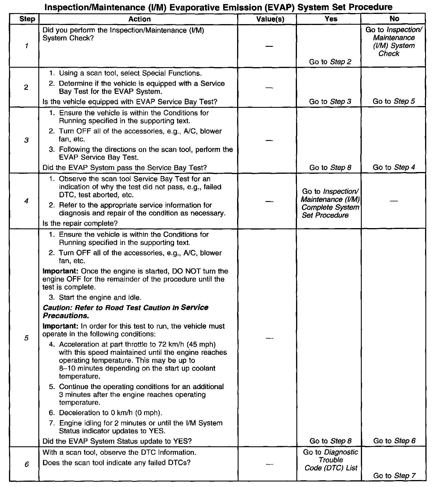 1. Make sure you perform the I/M System Check before performing this test. Failure to do so may result in difficulty updating the status to YES. Inspection/Maintenance (I/M) System Check
