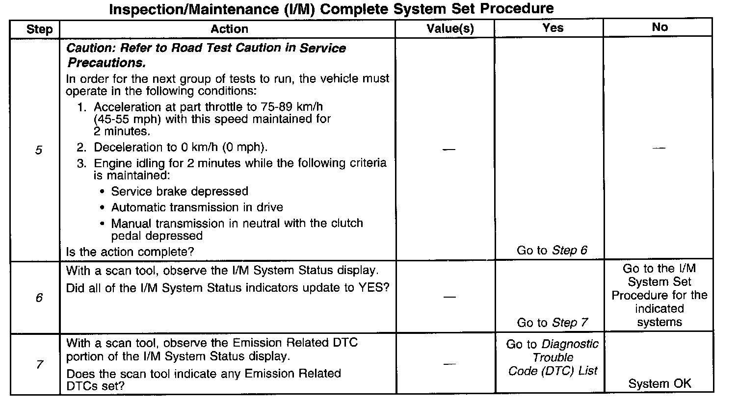 1. Make sure you perform the I/M System Check before performing this test. Failure to do so may result in difficulty updating the status to YES. Inspection/Maintenance (I/M) System Check