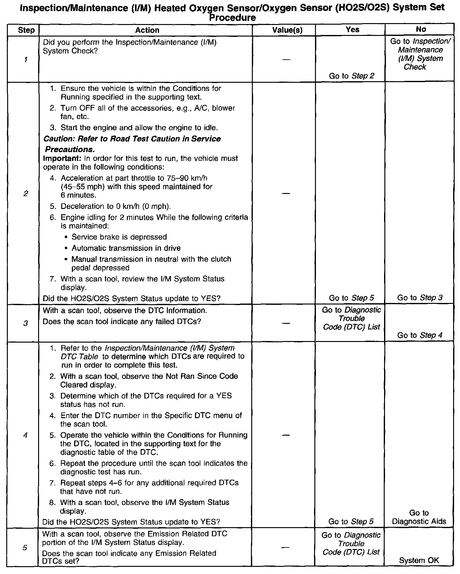 I/M HO2S/O2S System Set Procedures