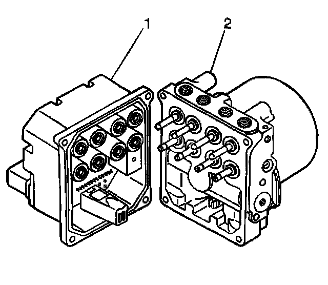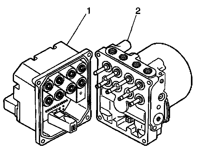 8. Remove the EBCM (1) from the BPMV (2) by gently pulling apart until separated.