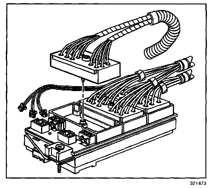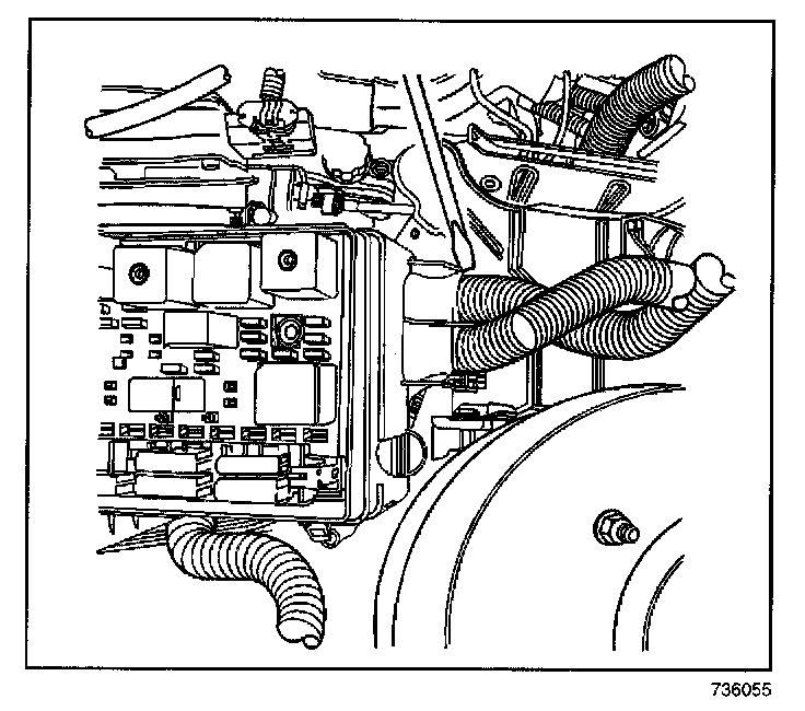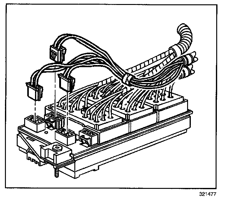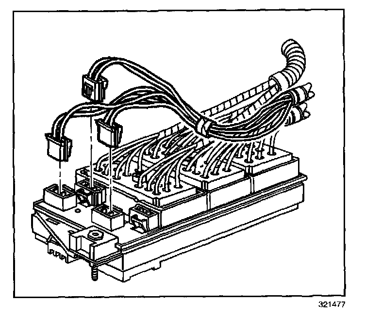 12. Loosen the bolts retaining the engine, the I/P, and the forward lamp wiring harness connectors to the junction block.
