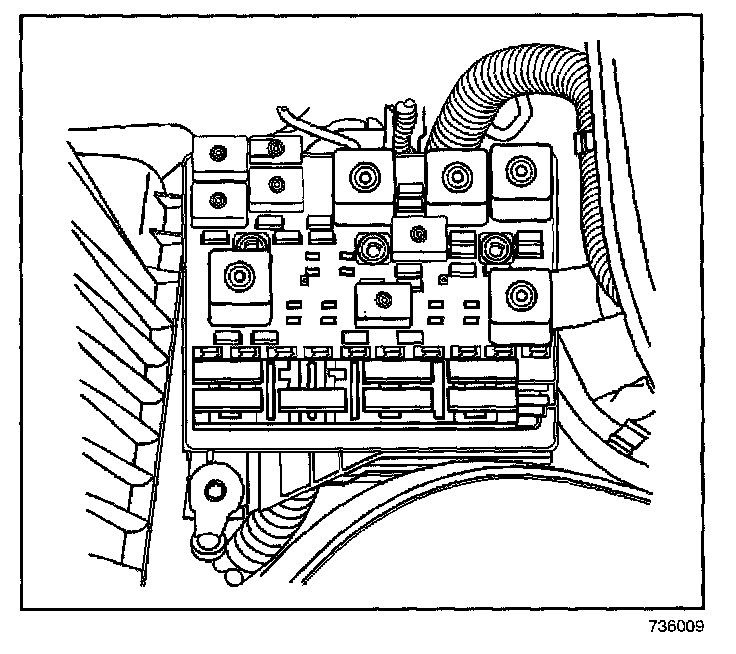 6. Reach under the front of the junction block. Press up on the relief in order to release the retainer tab.