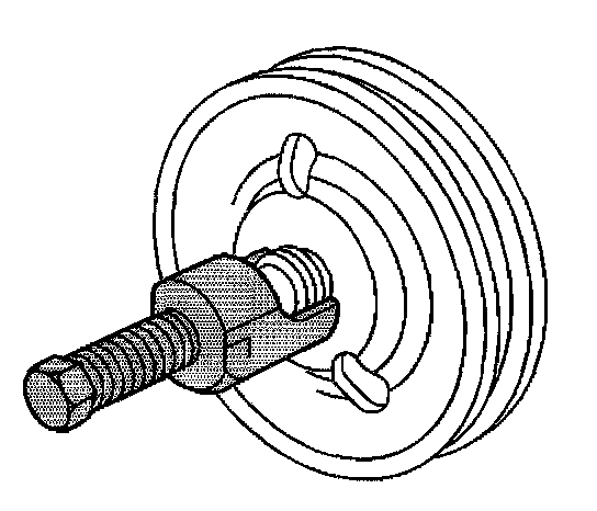 1. Install the power steering pump pulley to the pump using the J 25033-C. Ensure that the face of the pulley hub is flush with the pump drive shaft.