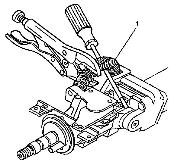 Tilt Spring - Disassemble - Off VehicleCaution: The tilt spring and the spring guide are under pressure. The tilt spring and the spring guide may become a projectile. Secure the spring with locking pliers during removal. Secure the spring with locking pliers during installation. Bodily injury may result during removal and installation of the tilt spring and the spring guide. Always use caution during removal and installation of the tilt spring and the spring guide.