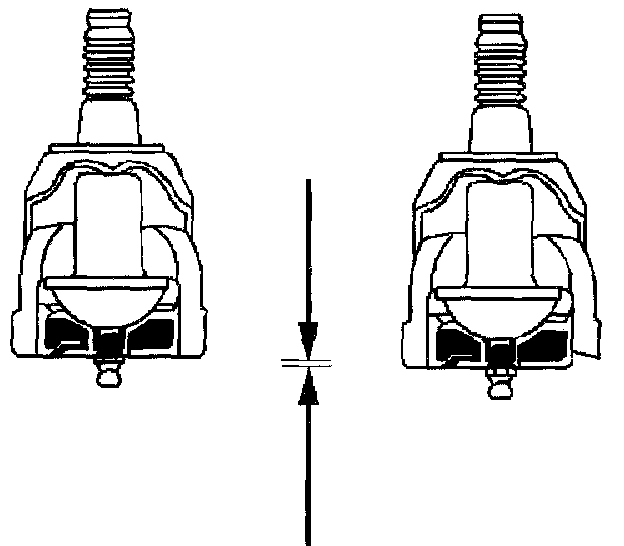 6.1. Inspect by sight the lower ball joint for wear. The position of the housing into which the grease fitting is threaded indicates wear. This round housing projects 1.27 mm (0.050 inch) beyond the surface of the lower ball joint cover on a new ball joint. Under normal wear, the surface of the lower ball joint housing retreats inward very slowly.