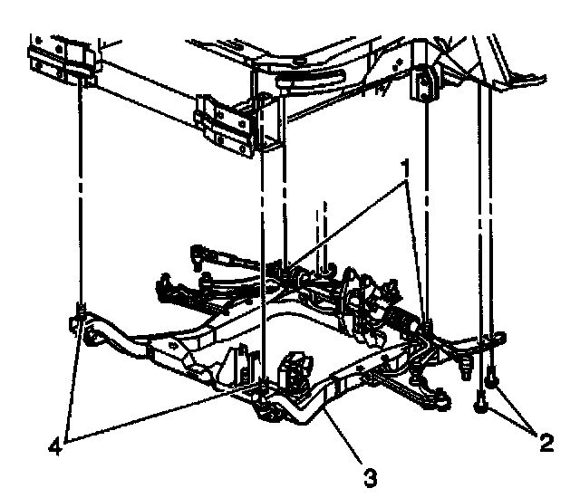 5. Install the front suspension crossmember support bolts (3). Hand tighten the bolts.