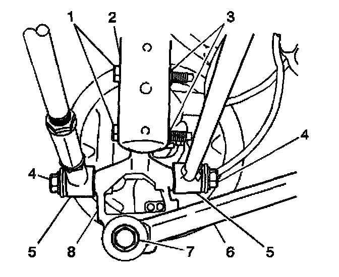 5. Remove the spindle rod to knuckle bolt (4) and nut.