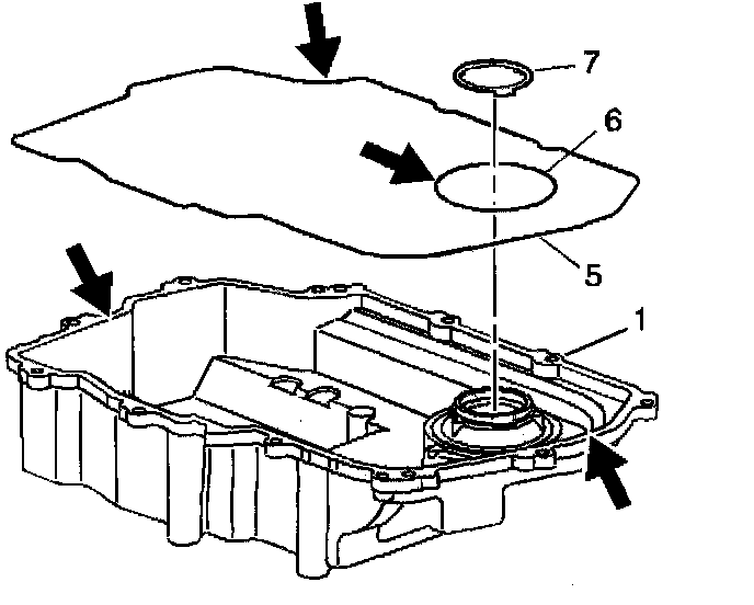 1. Remove the side cover gaskets (5 and 6) and the thrust washer (7) from the side cover (1).