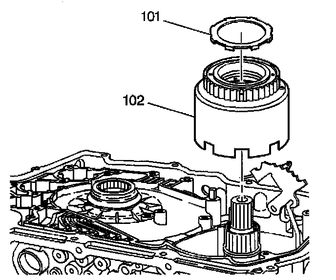 Remove the reverse input clutch housing and the 2nd roller clutch assembly (102).