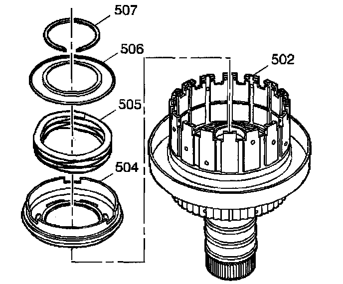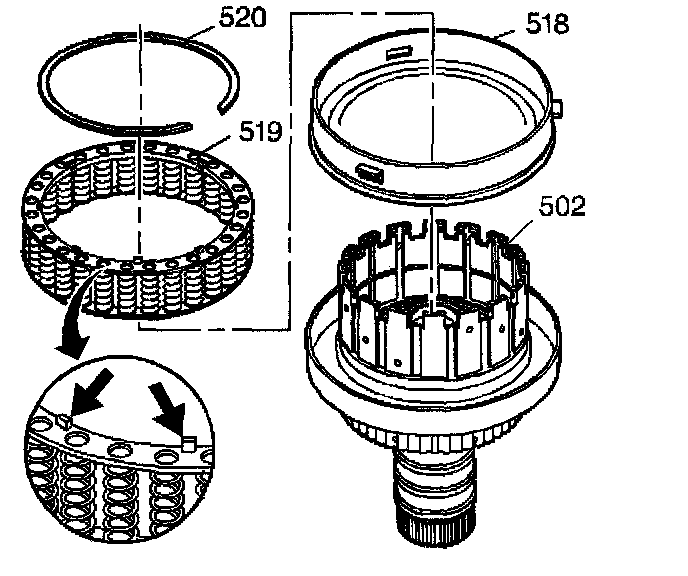 23. Remove the coast clutch return spring retainer (506) and the release spring (505).