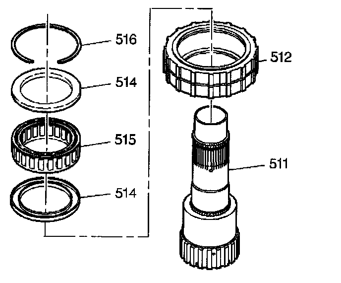 12. Lift up on the input sun shaft (511) in order to remove the input sun shaft (511) and the sprag (512) as an assembly.