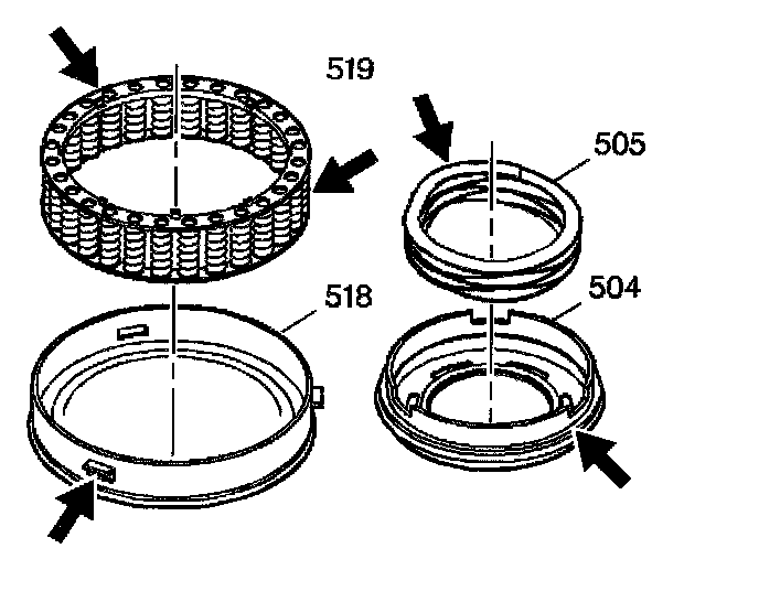 31. Inspect the clutch spring assemblies (519 and 505) for distortion or missing springs.