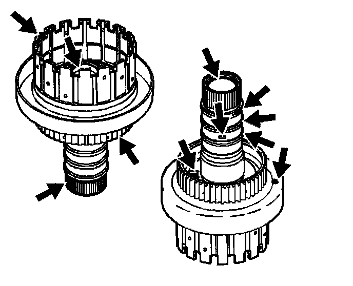 32. Inspect the direct clutch and coast clutch retainer and ball assemblies for leaks or damage.