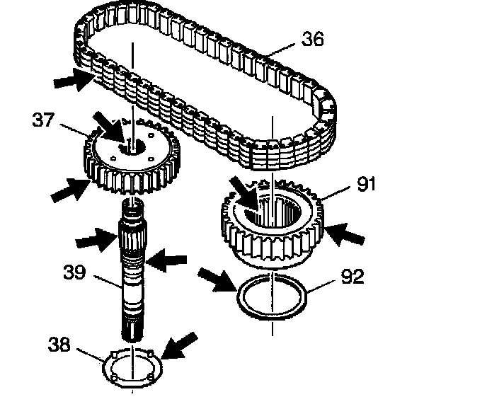 5. Inspect the drive sprocket, the driven sprocket, the drive link assembly, and the turbine shaft for damage or excessive wear.