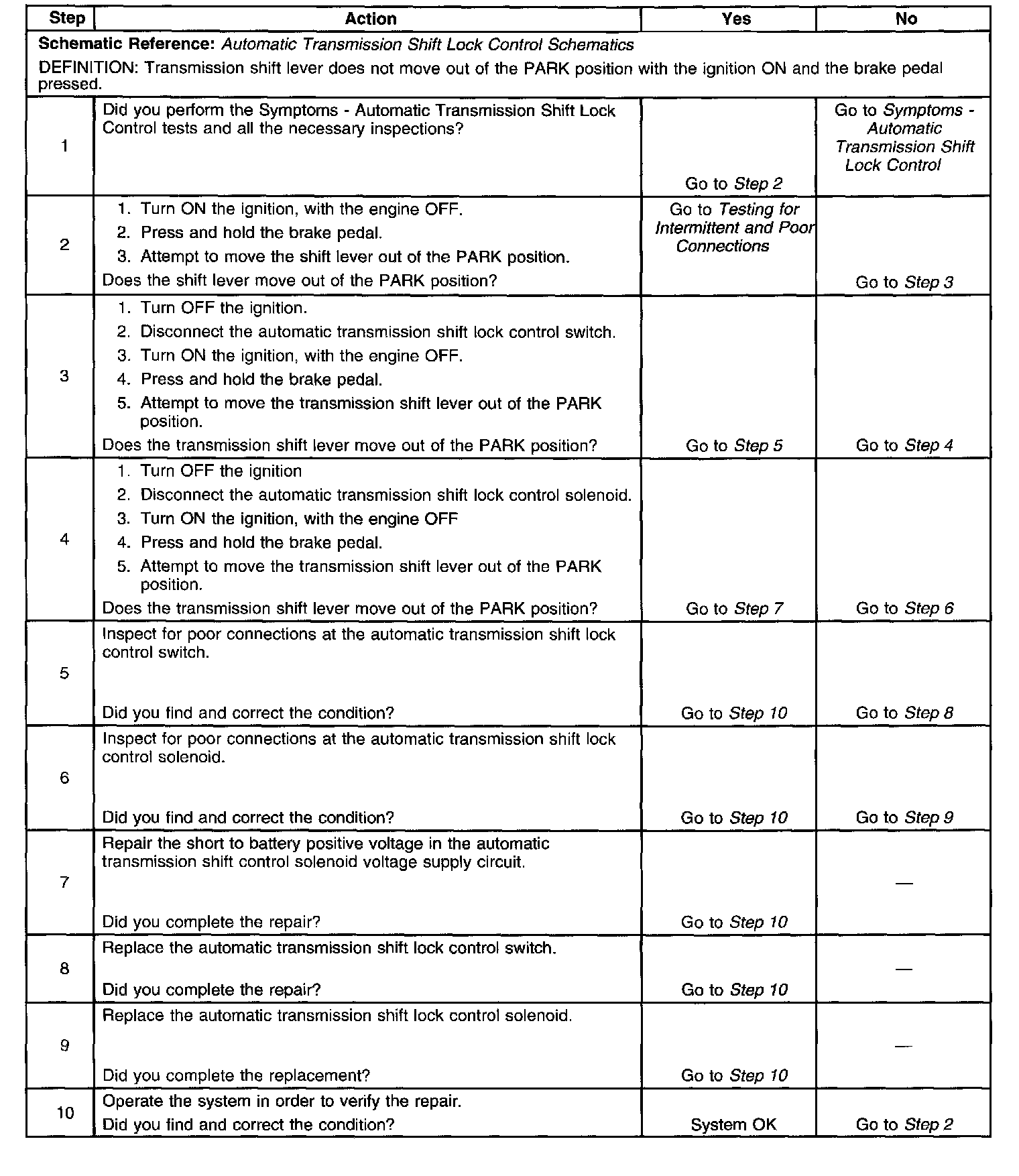 Shift Lever Does Not Move With Brake Pedal Depressed