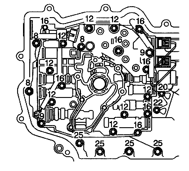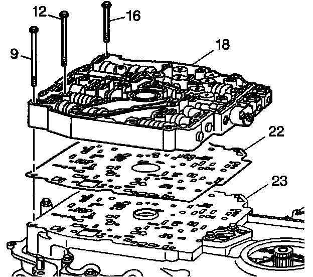 4. Remove and discard the valve body to spacer plate gasket (22).