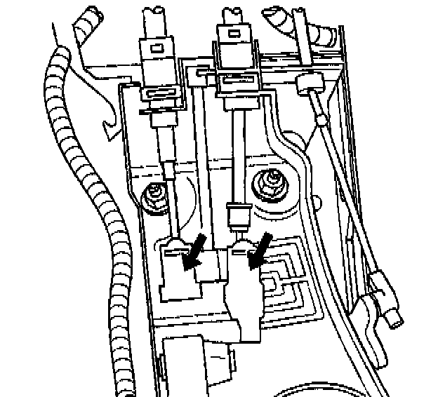 7. Remove both cables from the underhood cable bracket.