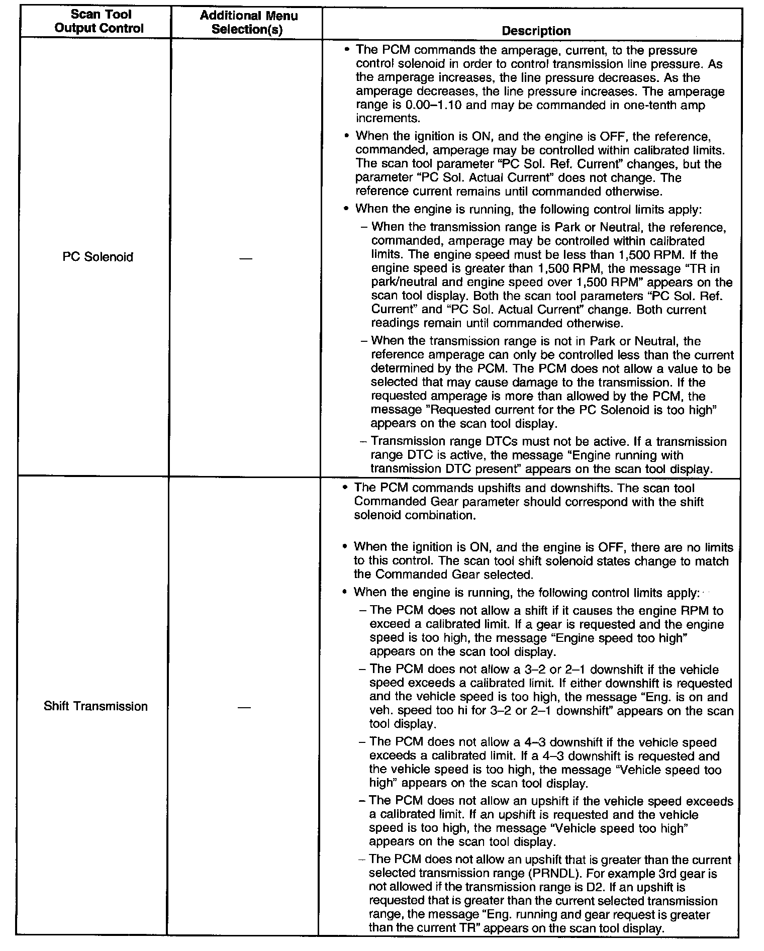 Scan Tool Output Controls