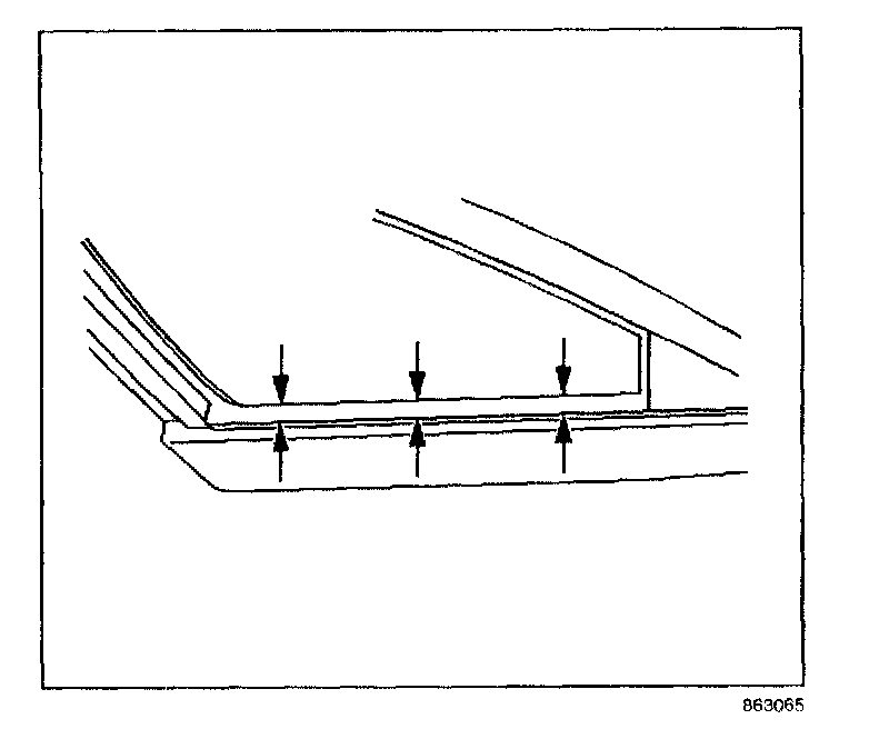 3. Measure the door metal inner to outer window panel opening and uniformly widen the opening 3 mm (1/8 in) by bending the outer flange outboard.
