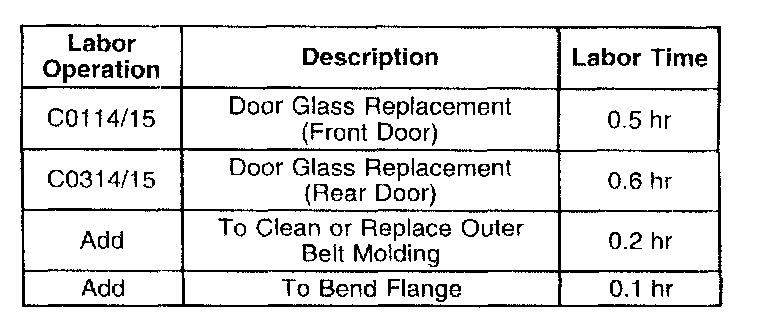 2. Remove the sealing strip outer belt molding from the outer door flange. Refer to the Sealing Strip Replacement procedure in the Doors sub-section of the Service Manual (Front Door - SI ID # 632220, Rear Door - SI ID # 632221).